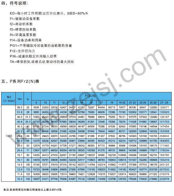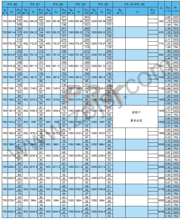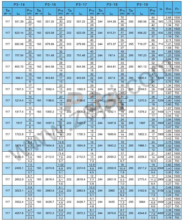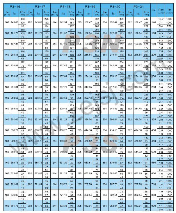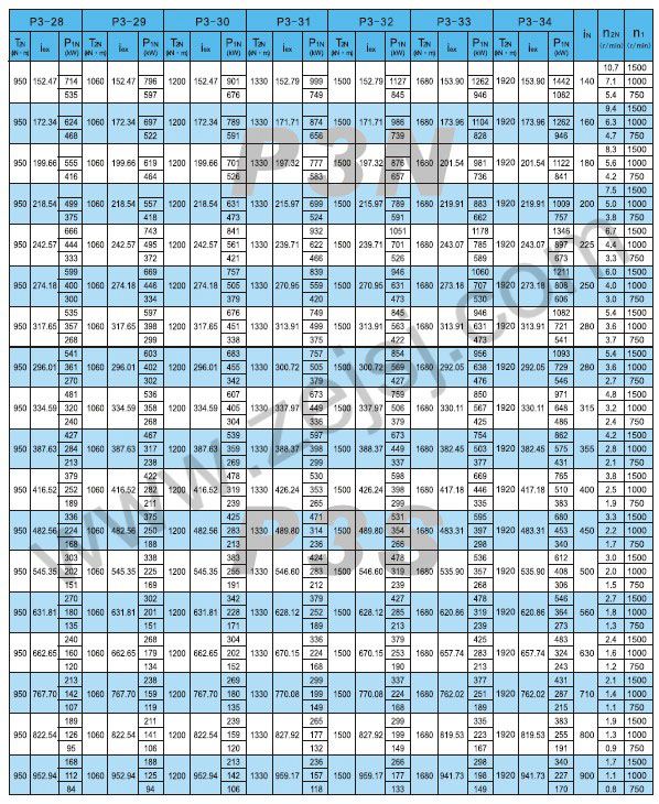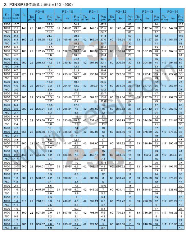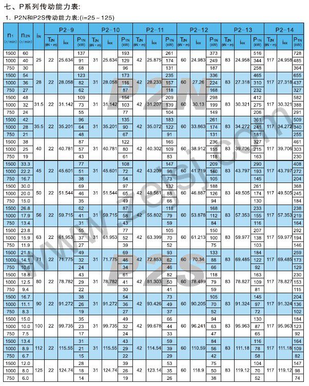 PN3和P3S傳動(dòng)能力表