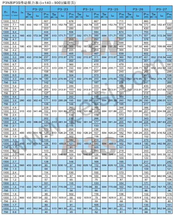 PN3和P3S傳動(dòng)能力表續(xù)1