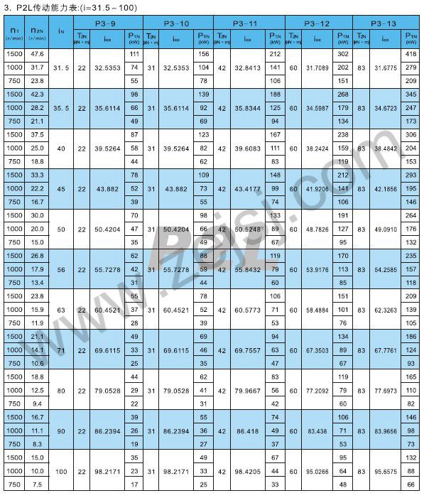 P2L傳動(dòng)能力表