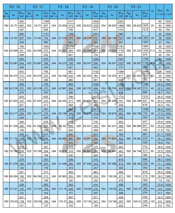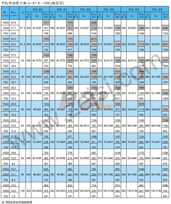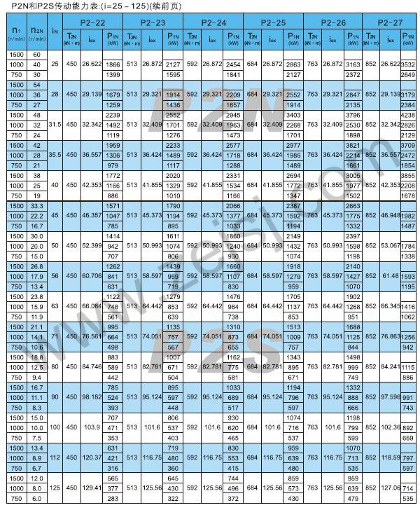 P2L傳動(dòng)能力表續(xù)2