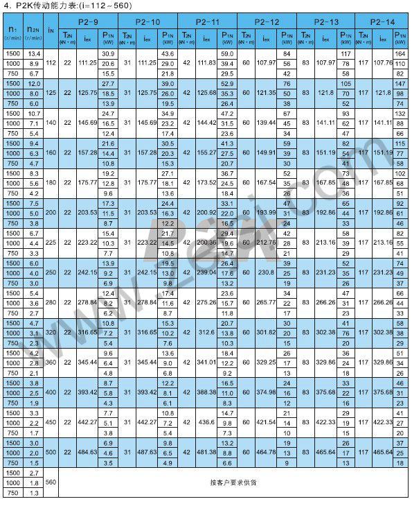 P2K傳動(dòng)能力表
