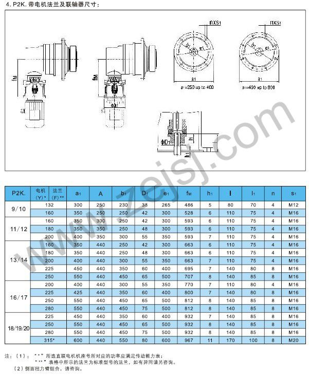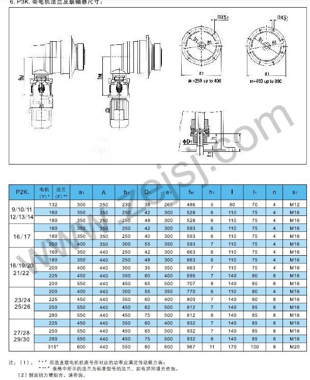 P2K帶電機(jī)法蘭及聯(lián)軸器尺寸