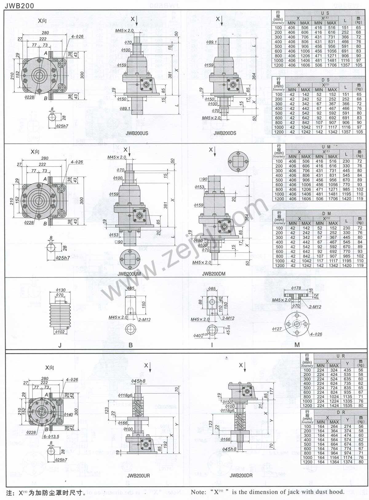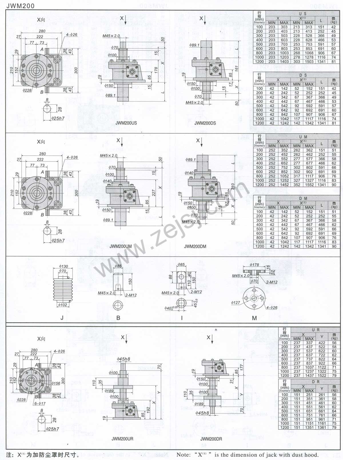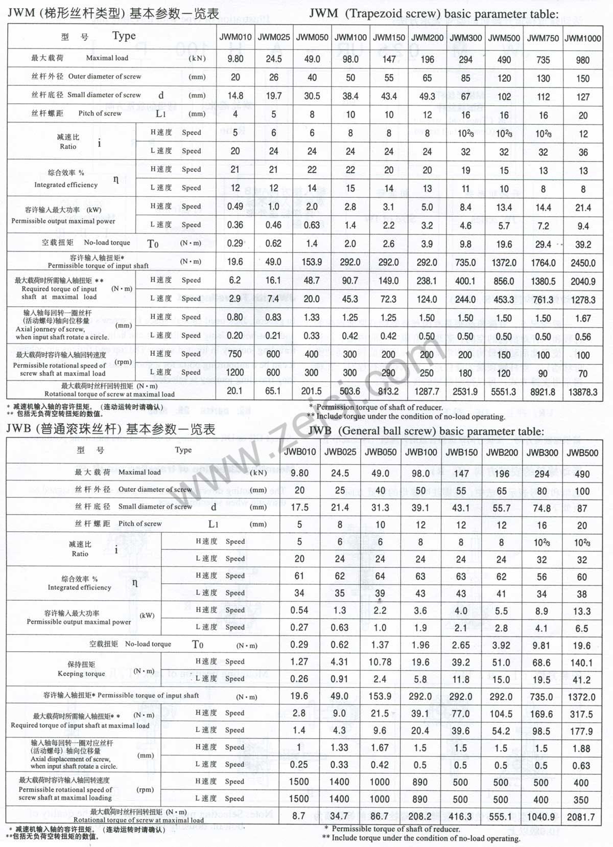 3.JWM(梯形絲桿類型)基本參數(shù)一覽表