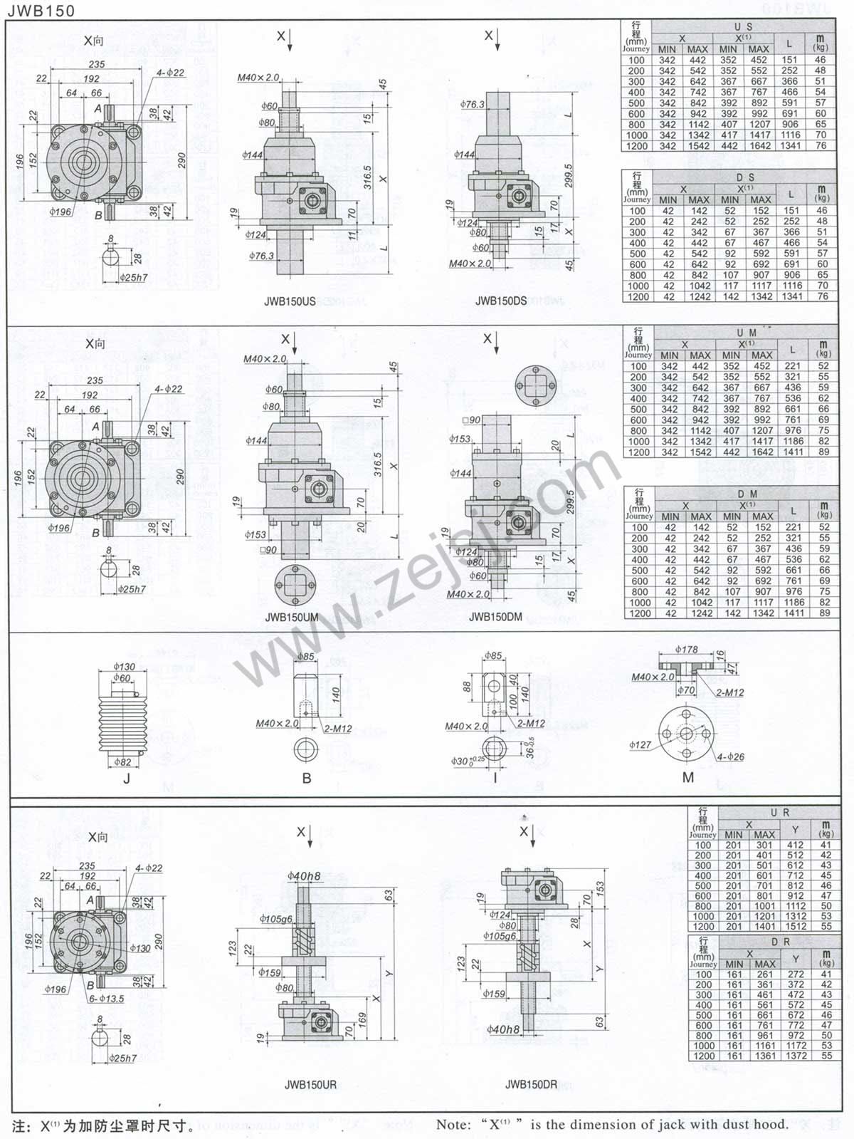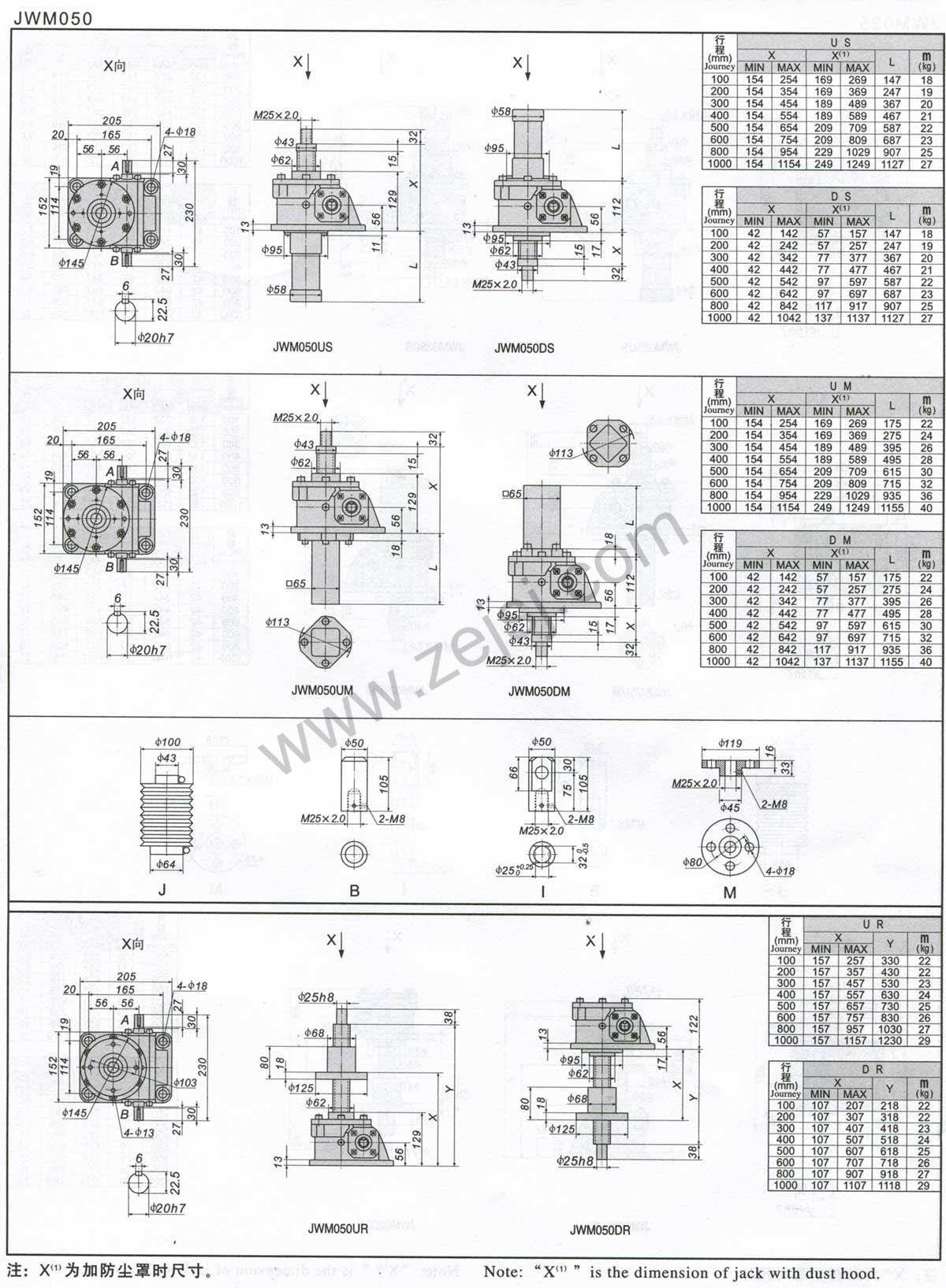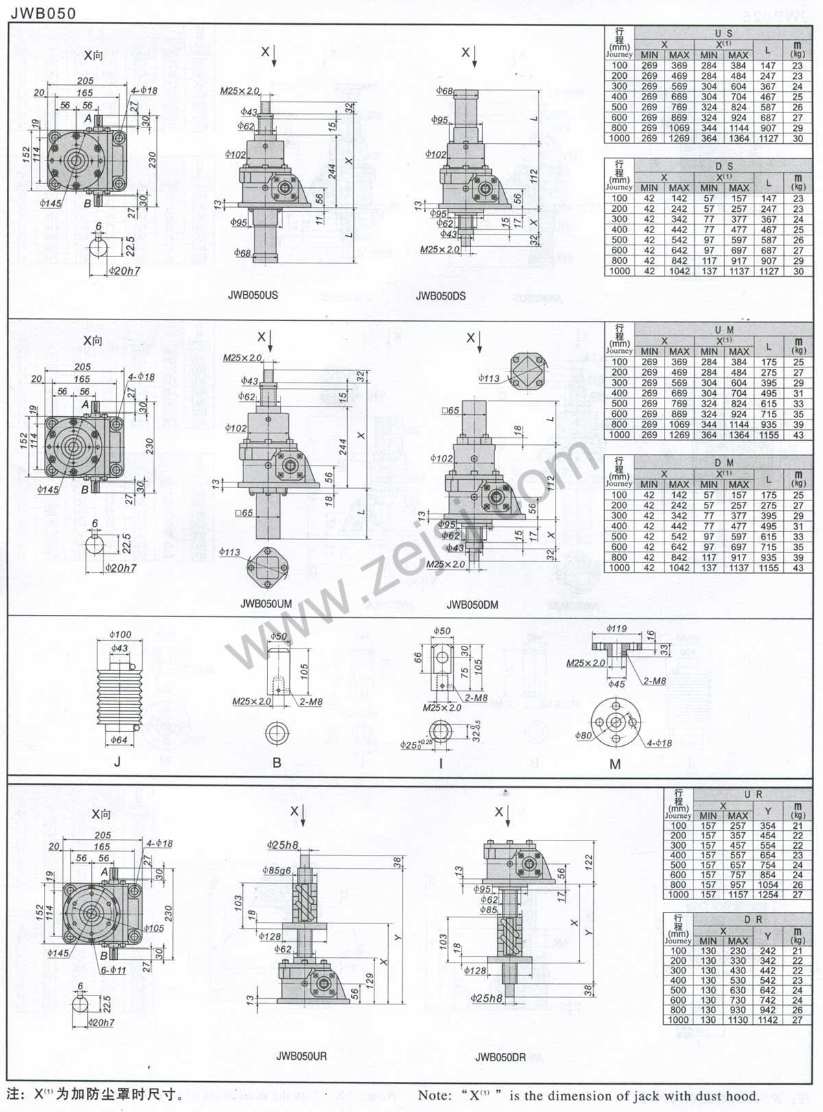 3.JWM(梯形絲桿類型)基本參數(shù)一覽表